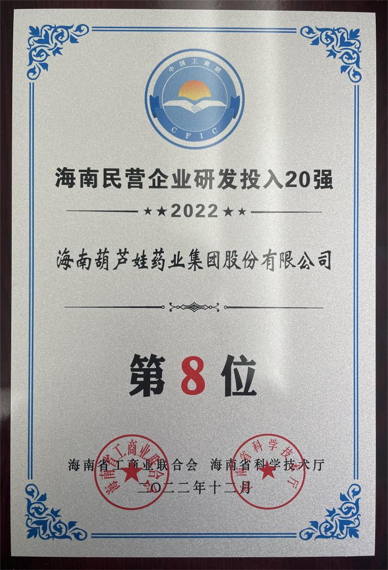 12月23日,2022海南民营企业50强和研发投入20强发布会在海口举行。会上发布了“2022海南民营企业50强”“2022海南民营企业研发投入20强”榜单和分析报告。尊龙时凯药业再次荣登两榜,在海南民营企业50强榜单中位列第25位,较去年上升8位,这也是公司连续三年登榜;在海南民营企业研发投入20强中位列第8位,较去年上升7位。